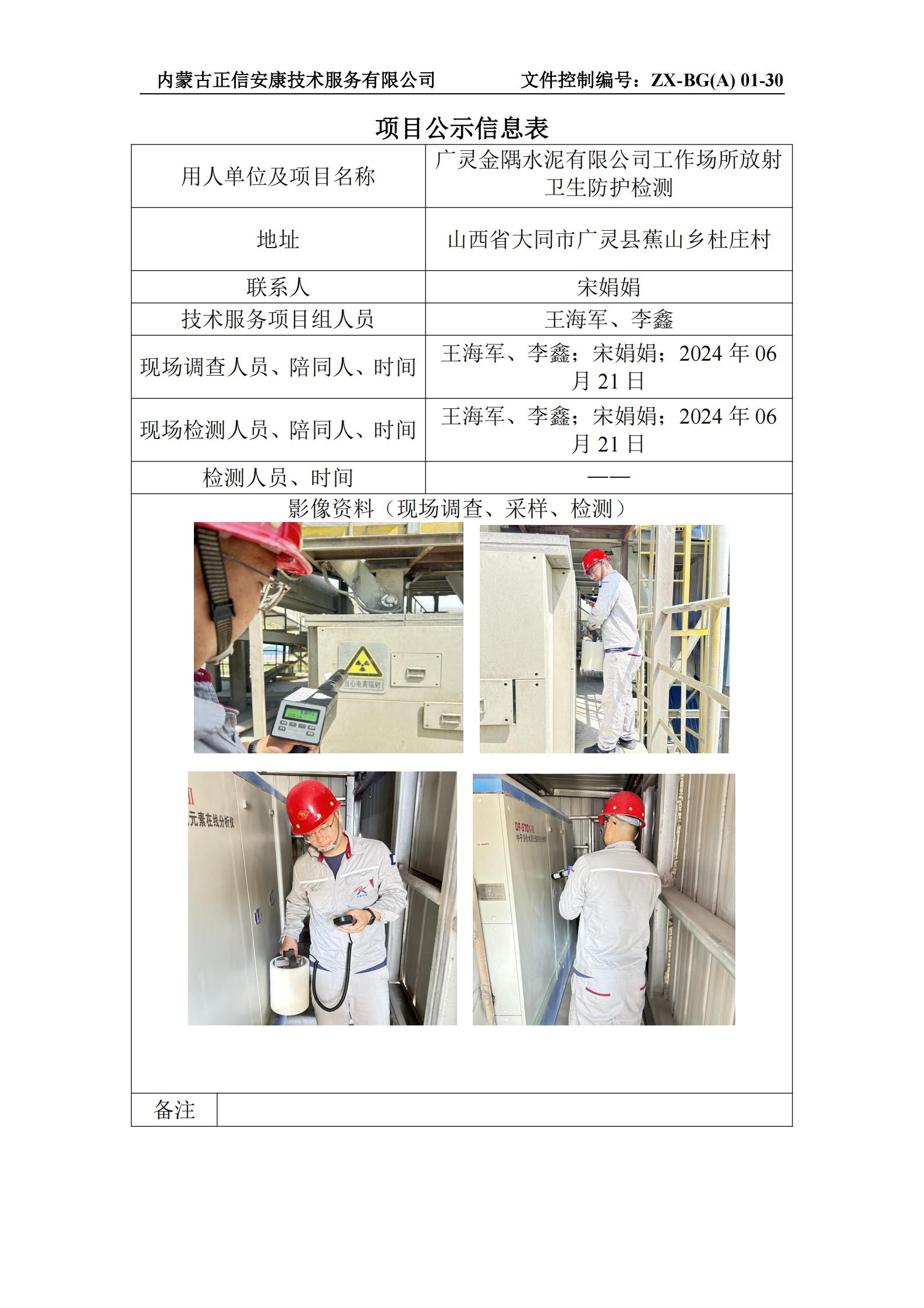 廣靈金隅水泥有限公司工作場所放射 衛(wèi)生防護檢測