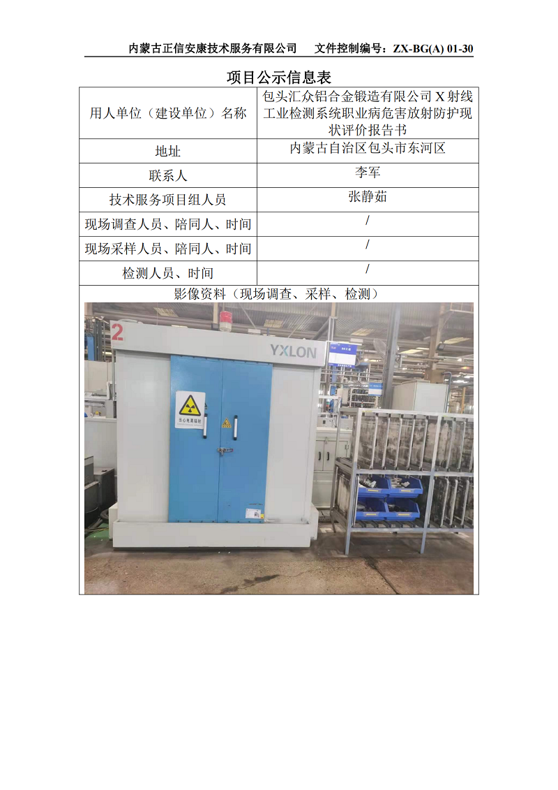 包頭匯眾鋁合金鍛造有限公司X射線工業(yè)檢測(cè)系統(tǒng)職業(yè)病危害放射防護(hù)現(xiàn)狀評(píng)價(jià)