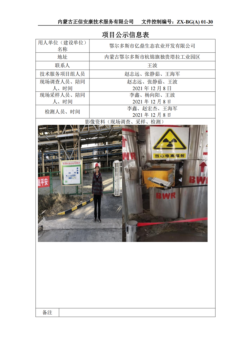 鄂爾多斯市億鼎生態(tài)農(nóng)業(yè)開發(fā)有限公司職業(yè)病危害放射防護現(xiàn)狀評價報告項目公示信息表