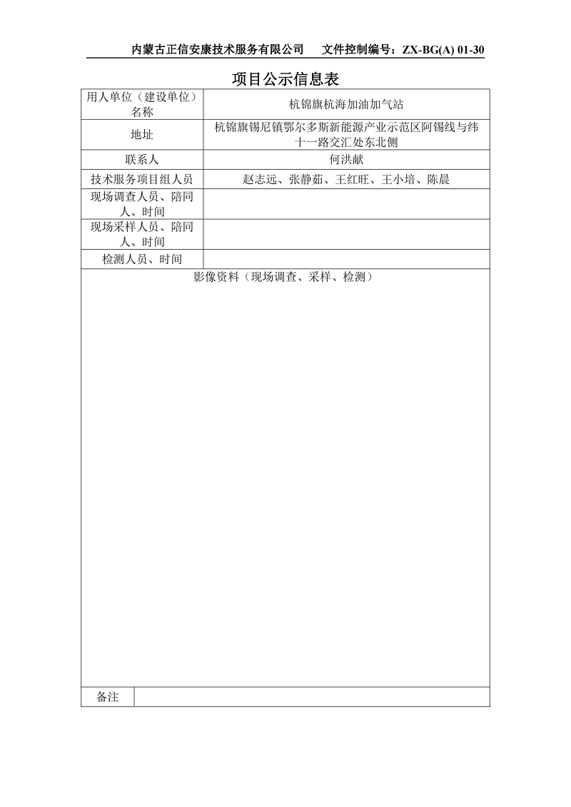 杭錦旗杭海加油加氣站LNG加氣項目職業(yè)病危害預(yù)評價報告項目公示信息表