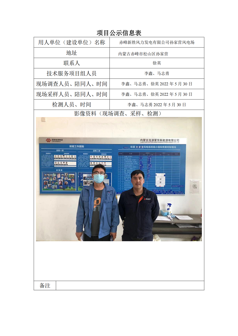 赤峰新勝風力發(fā)電有限公司孫家營風電場信息公示