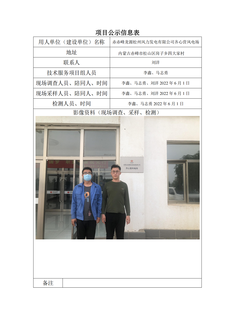 赤峰龍?jiān)此芍蒿L(fēng)力發(fā)電有限公司齊心營(yíng)風(fēng)電場(chǎng)項(xiàng)目公示