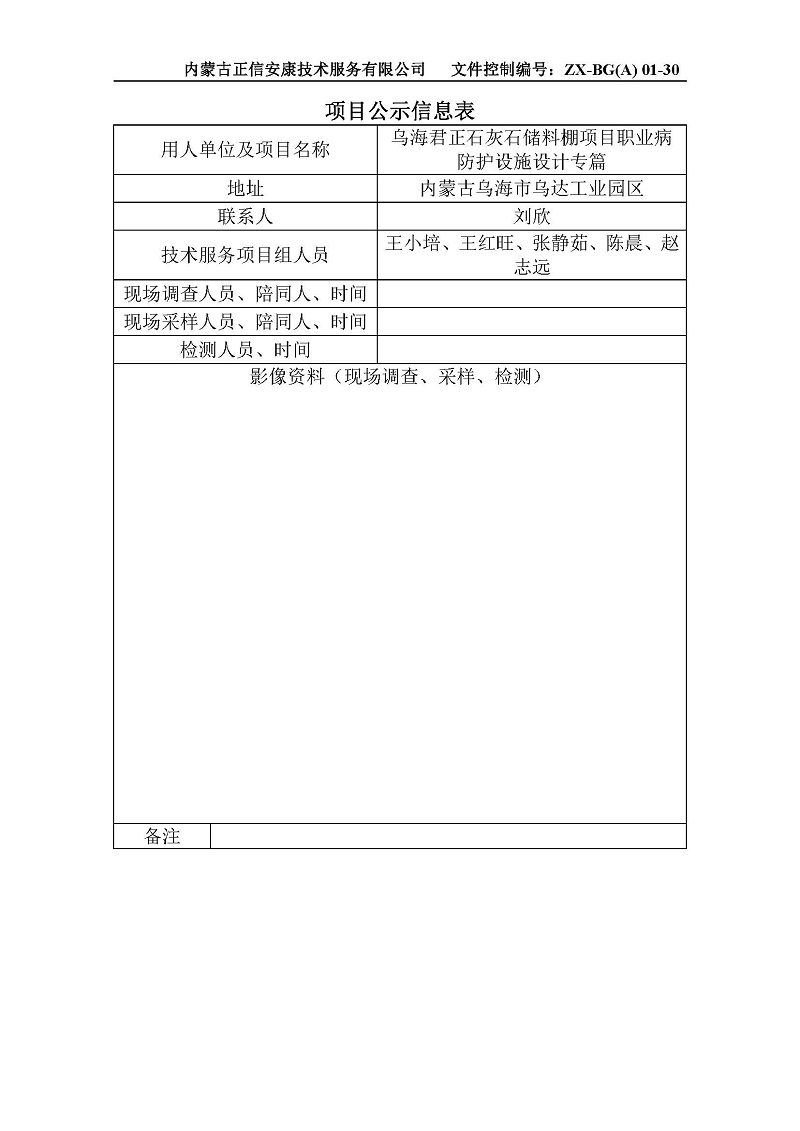 烏海君正石灰石儲(chǔ)料棚項(xiàng)目職業(yè)病防護(hù)設(shè)施設(shè)計(jì)專篇項(xiàng)目公示