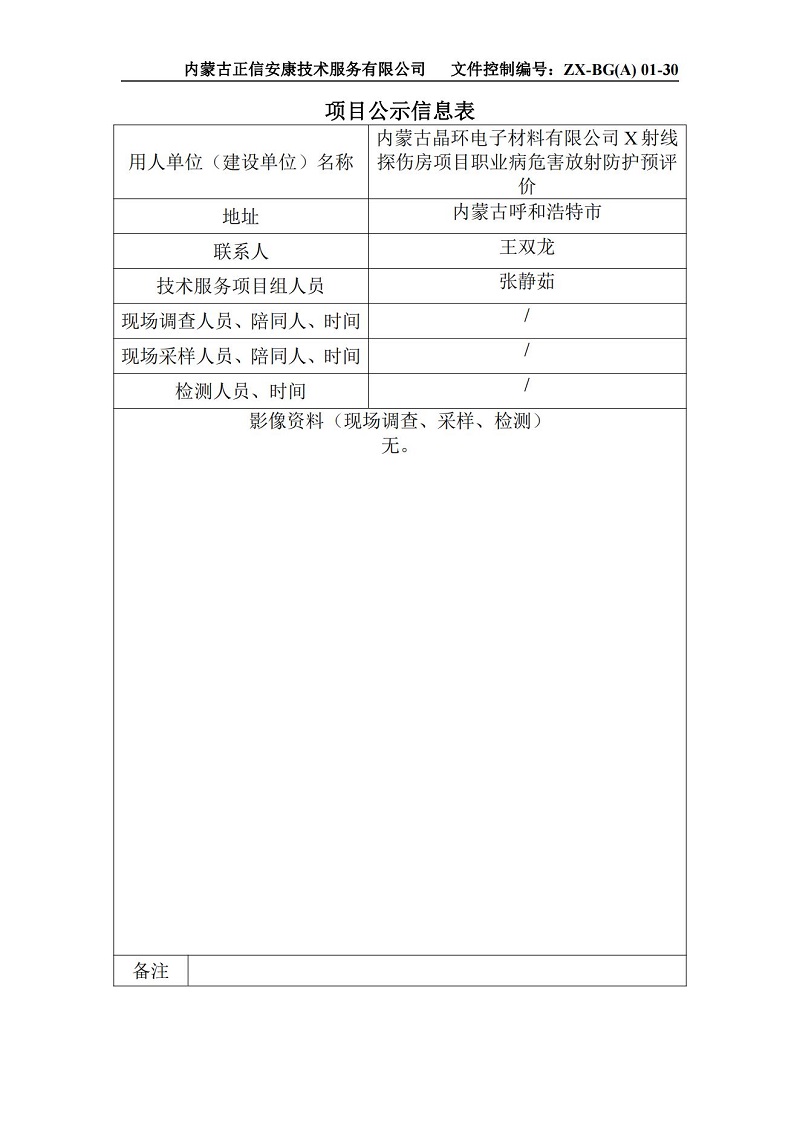 內(nèi)蒙古晶環(huán)電子材料有限公司X射線探傷房項(xiàng)目職業(yè)病危害放射防護(hù)預(yù)評(píng)價(jià)