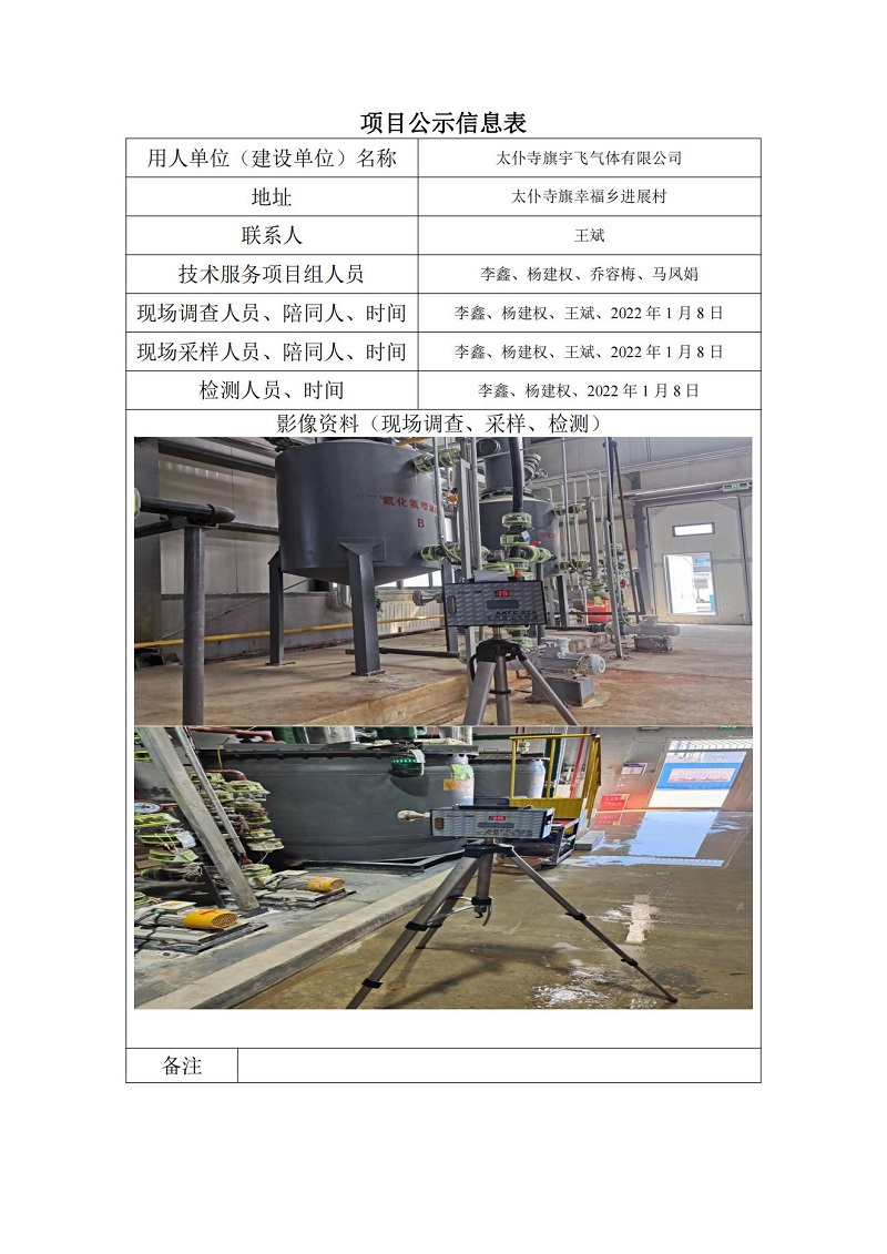 太仆寺旗宇飛氣體有限公司定期檢測(cè)項(xiàng)目公示