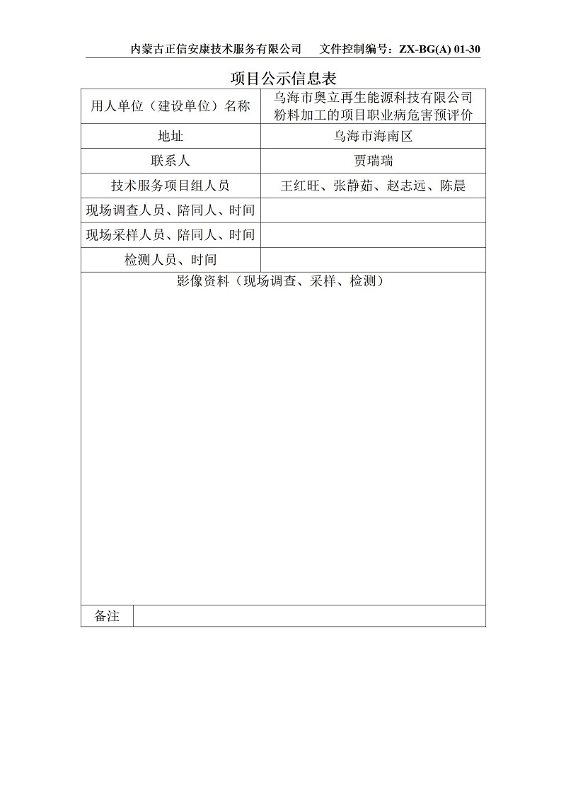 奧利粉料加工專(zhuān)篇項(xiàng)目公示信息表