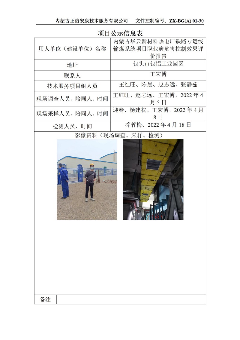 華云熱電廠鐵路轉(zhuǎn)運(yùn)行輸煤系統(tǒng)控評(píng)項(xiàng)目公示信息表