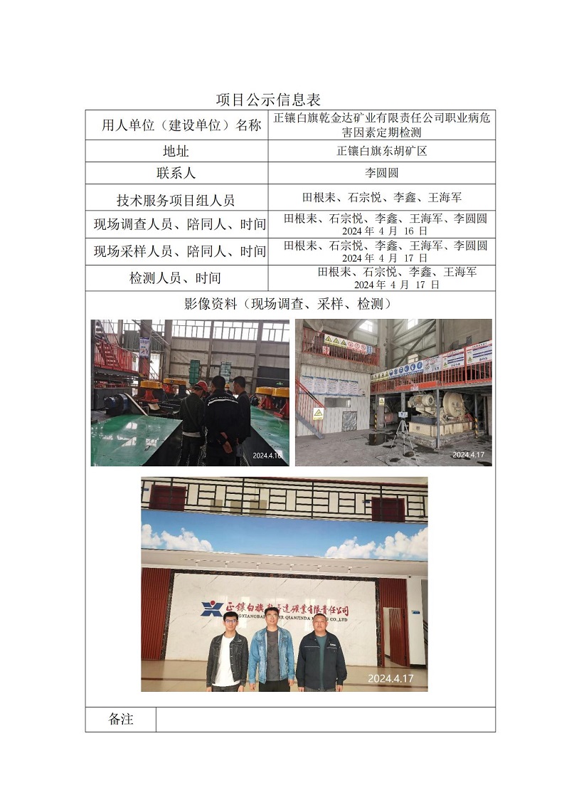 正鑲白旗乾金達(dá)礦業(yè)有限責(zé)任公司職業(yè)病危害因素定期檢測(cè)