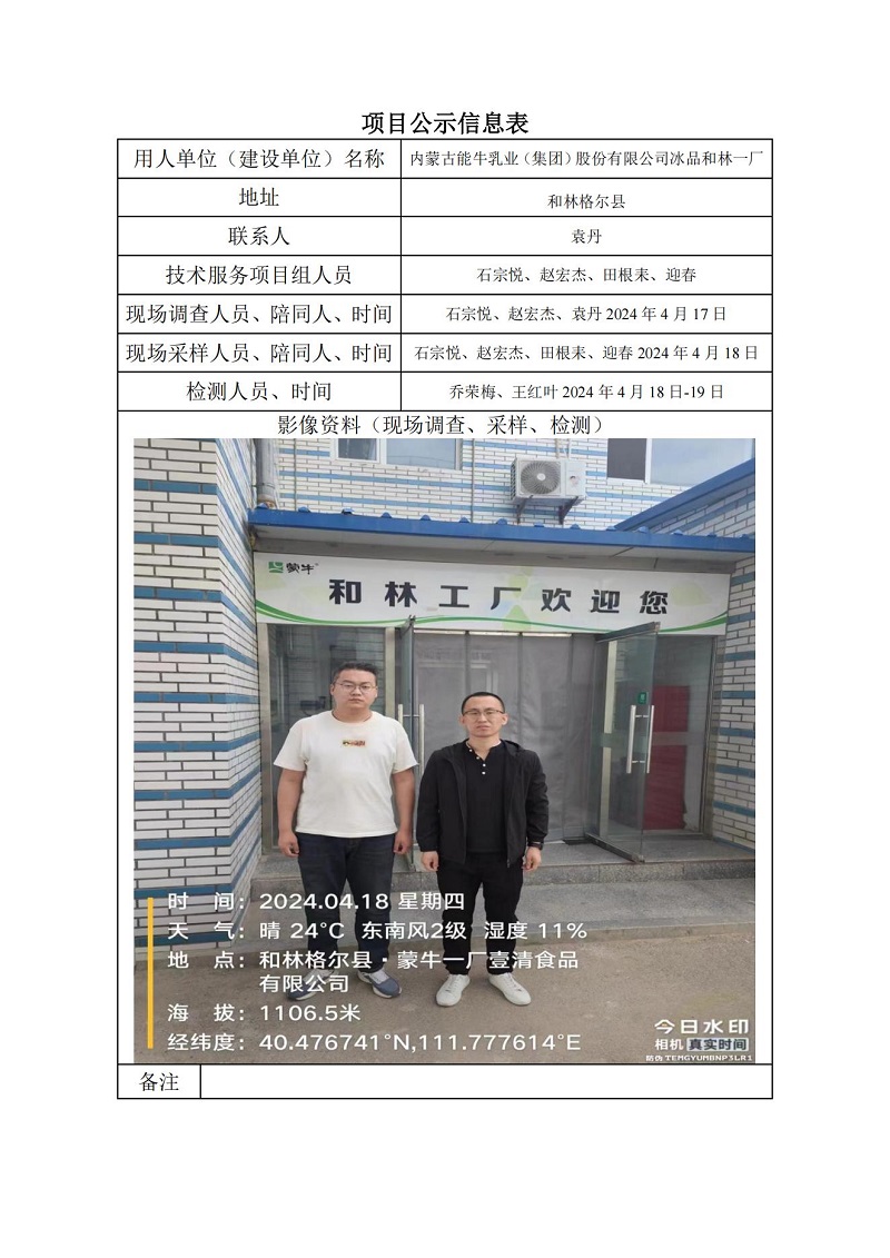蒙牛冰品定期檢測項目公示表