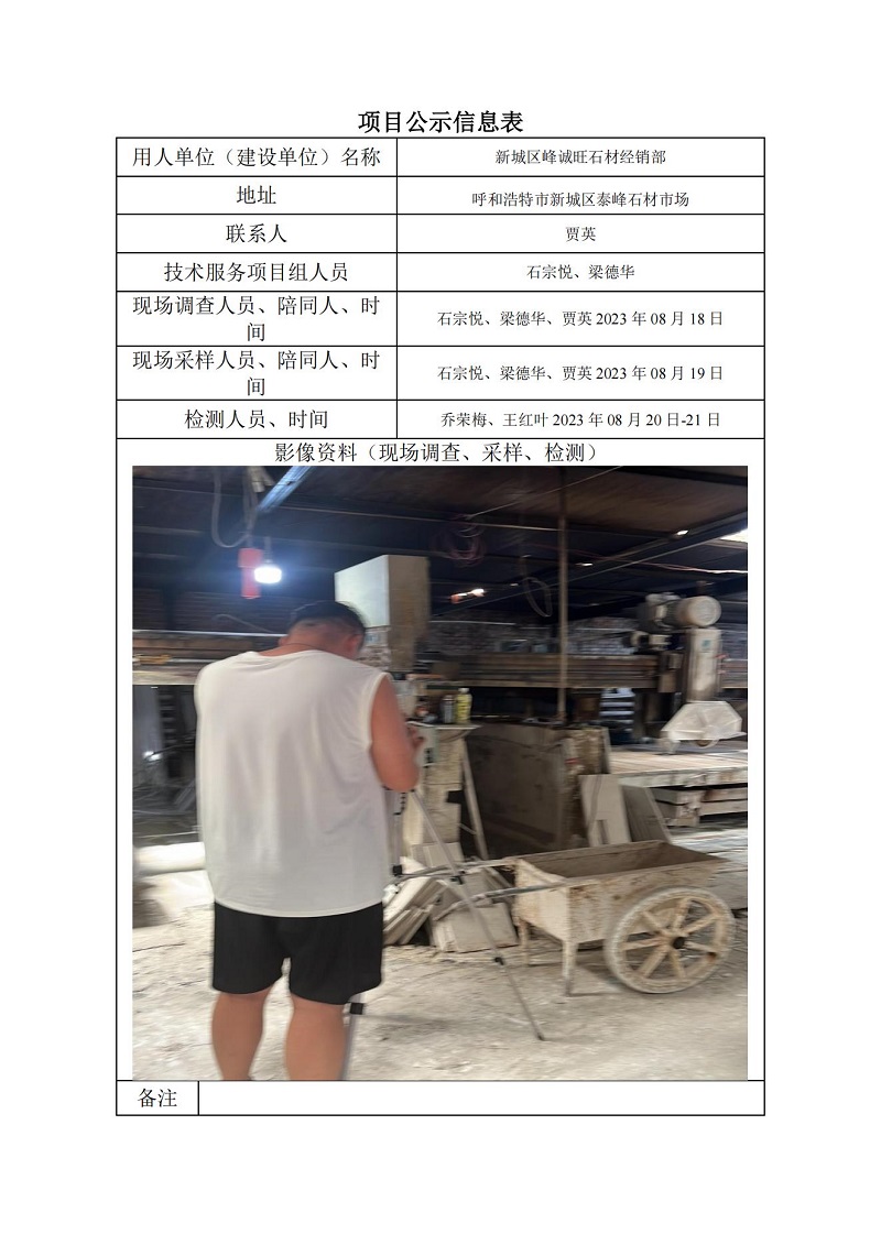 新城區(qū)峰誠旺石材經(jīng)銷部定期檢測