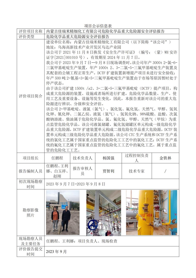 內(nèi)蒙古佳瑞米精細化工有限公司危險化學品重大危險源安全評估報告