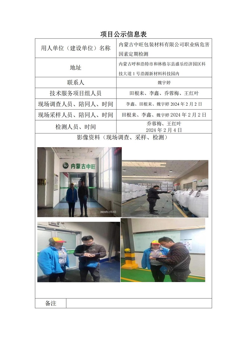 內(nèi)蒙古中旺包裝材料有限公司職業(yè)病危害因素定期檢測(cè)