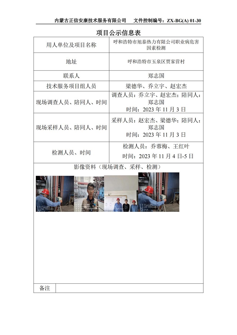 呼和浩特市旭泰熱力有限公司職業(yè)病危害因素檢測項目公示信息表(1)