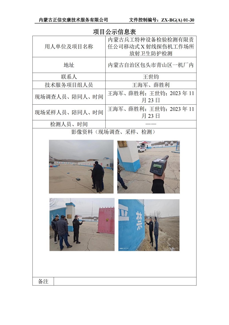 內蒙古兵工特種設備檢驗檢測有限責任公司移動式X射線探傷機工作場所放射衛(wèi)生防護檢測