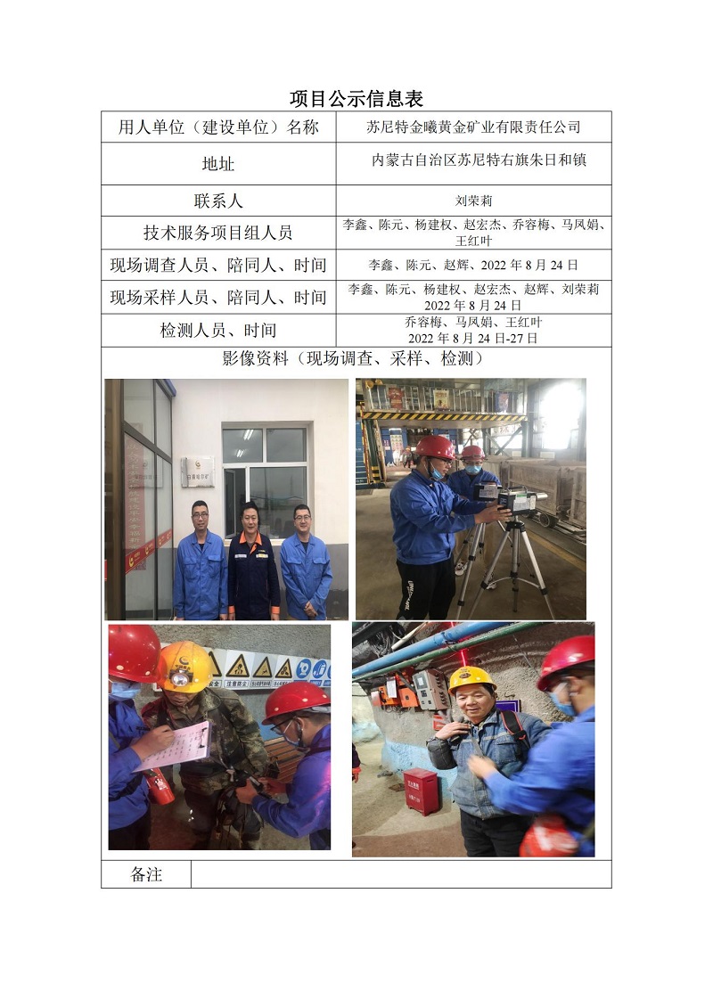 蘇尼特金曦黃金礦業(yè)有限公司白音哈爾礦職業(yè)衛(wèi)生定期檢測