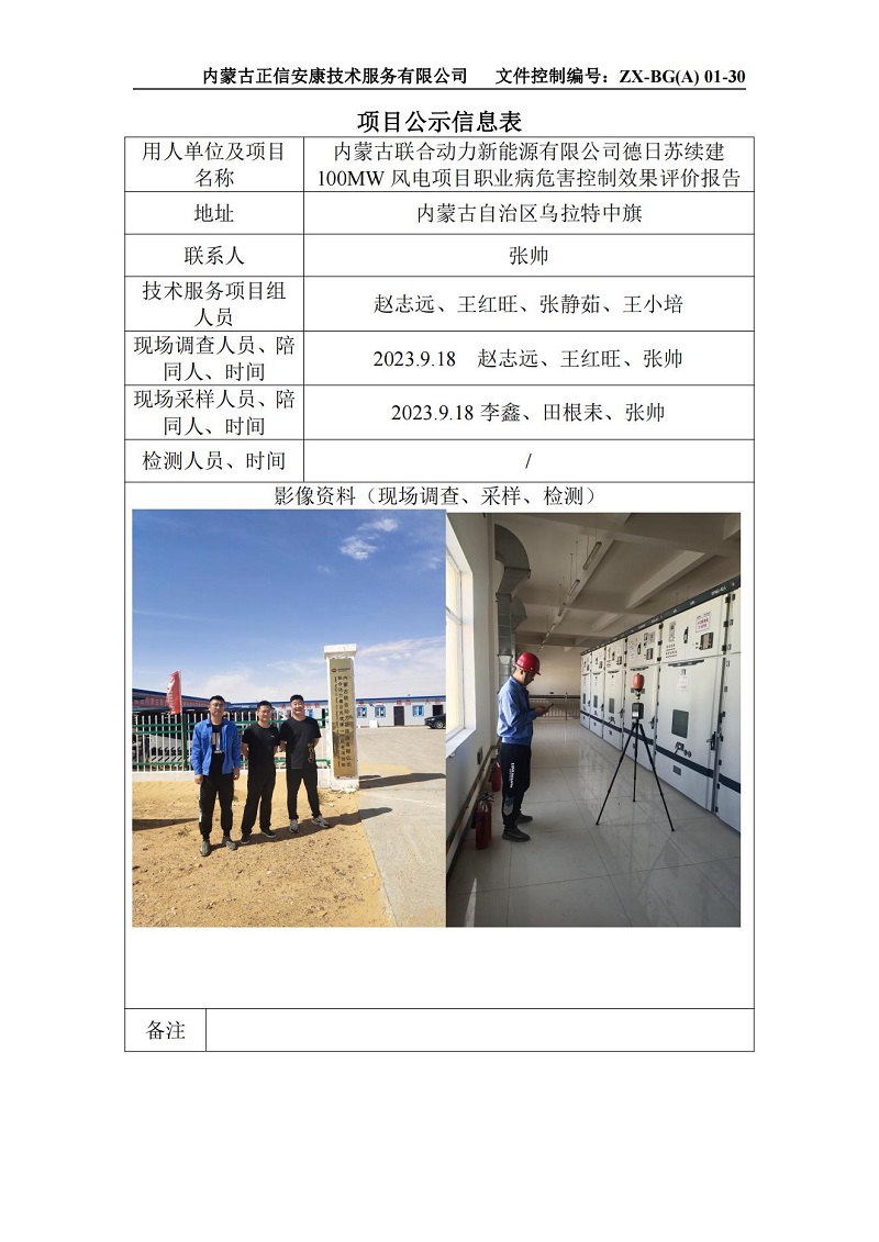 內(nèi)蒙古聯(lián)合動(dòng)力新能源有限公司德日蘇續(xù)建100MW風(fēng)電項(xiàng)目控制效果評(píng)價(jià)-項(xiàng)目公示信息表