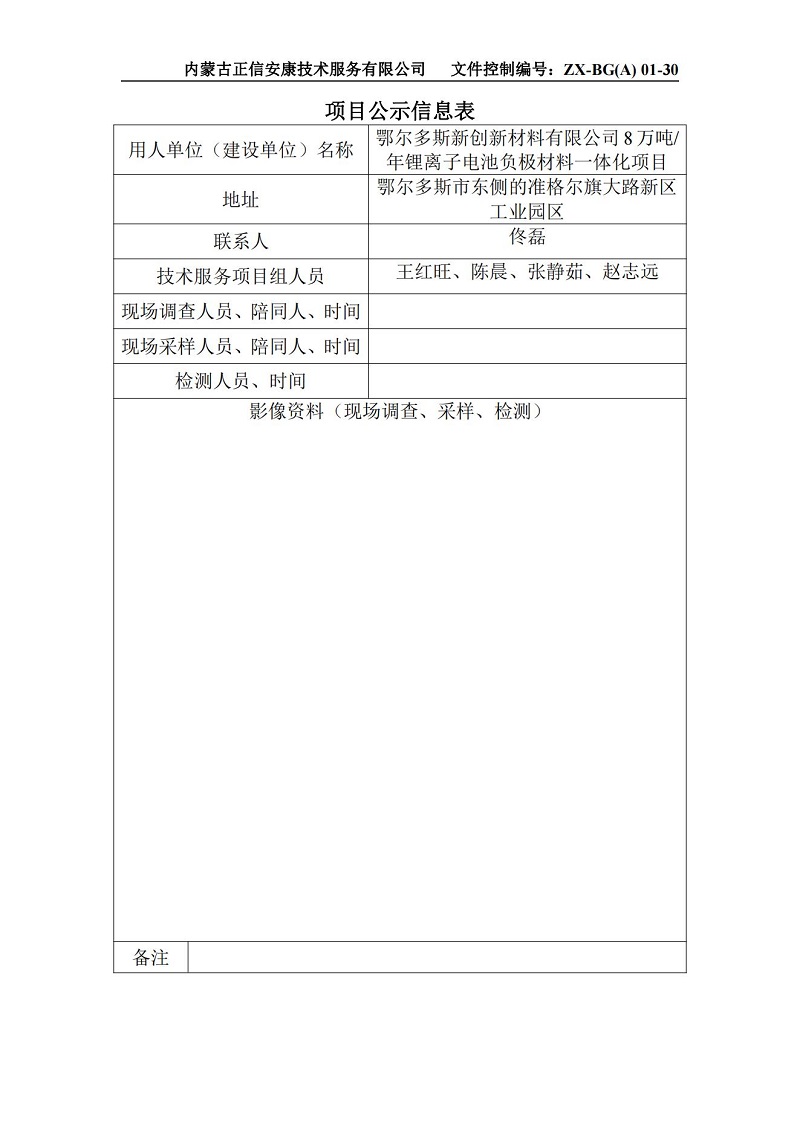 鄂爾多斯市新創(chuàng)8萬噸鋰離子負極材料一體化項目預評公示信息表