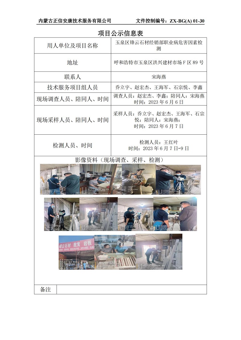 玉泉區(qū)鋒云石材經(jīng)銷部職業(yè)病危害因素檢測