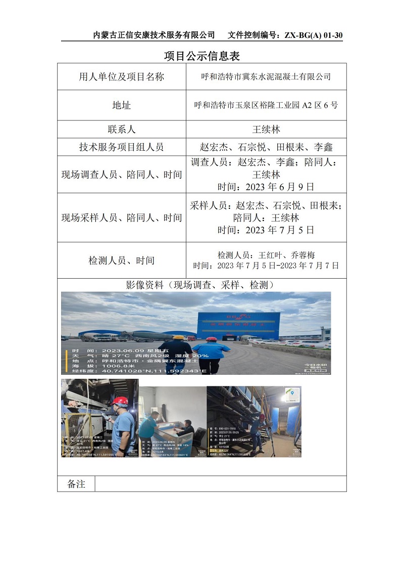 呼和浩特市冀東水泥混凝土有限公司項目公示信息表_