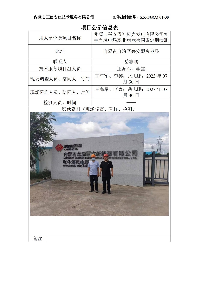 龍源(興安盟)風(fēng)力發(fā)電有限公司牤牛海風(fēng)電場職業(yè)病危害因素定期檢測