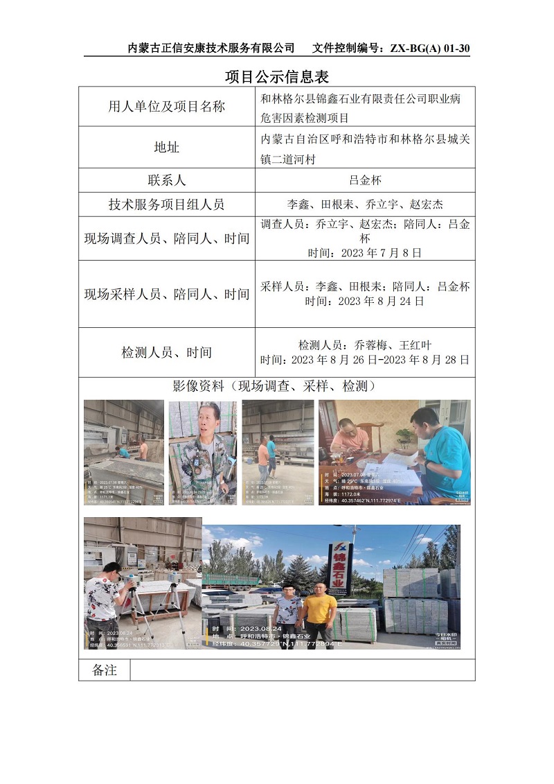和林格爾縣錦鑫石業(yè)有限責(zé)任公司職業(yè)病危害因素檢測項(xiàng)目公示信息表