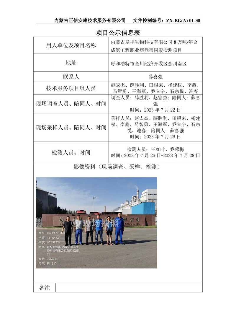 內(nèi)蒙古阜豐生物科技有限公司8萬(wàn)噸年合成氨工程項(xiàng)目公示信息表