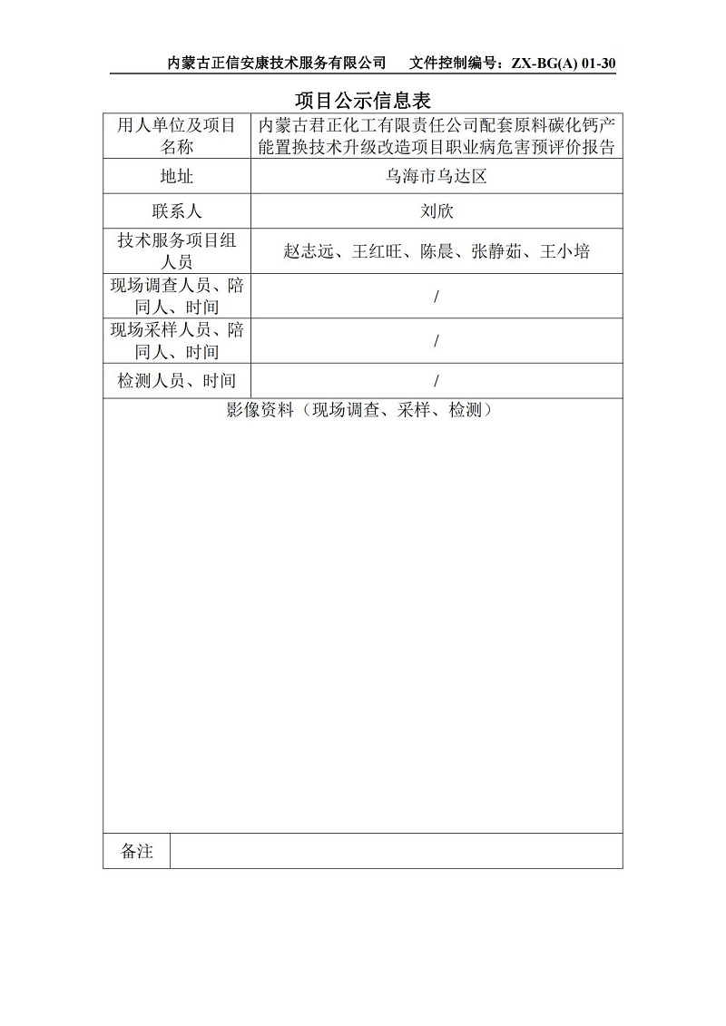 內(nèi)蒙古君正化工有限責(zé)任公司優(yōu)化原料配比節(jié)能環(huán)保技改項目職業(yè)病危害預(yù)評價報告-項目公示信息表