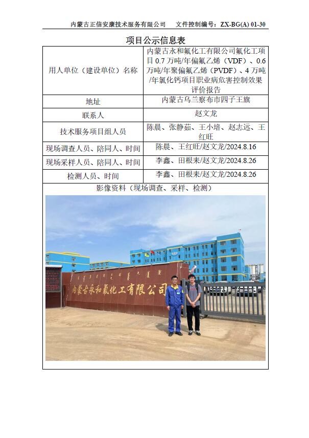 內(nèi)蒙古永和氟化工有限公司氟化工項目0.7萬噸/年偏氟乙烯(VDF)、0.6萬噸/年聚偏氟乙烯(PVDF)、4萬噸/年氯化鈣項目職業(yè)病危害控制效果評價報告