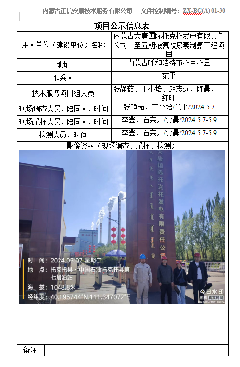 內(nèi)蒙古大唐國際托克托發(fā)電有限責(zé)任公司一至五期液氨改尿素制氨工程項(xiàng)目職業(yè)病危害控制效果評(píng)價(jià)