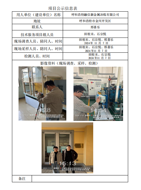 呼和浩特融信新金屬冶煉有限公司職業(yè)衛(wèi)生定期檢測