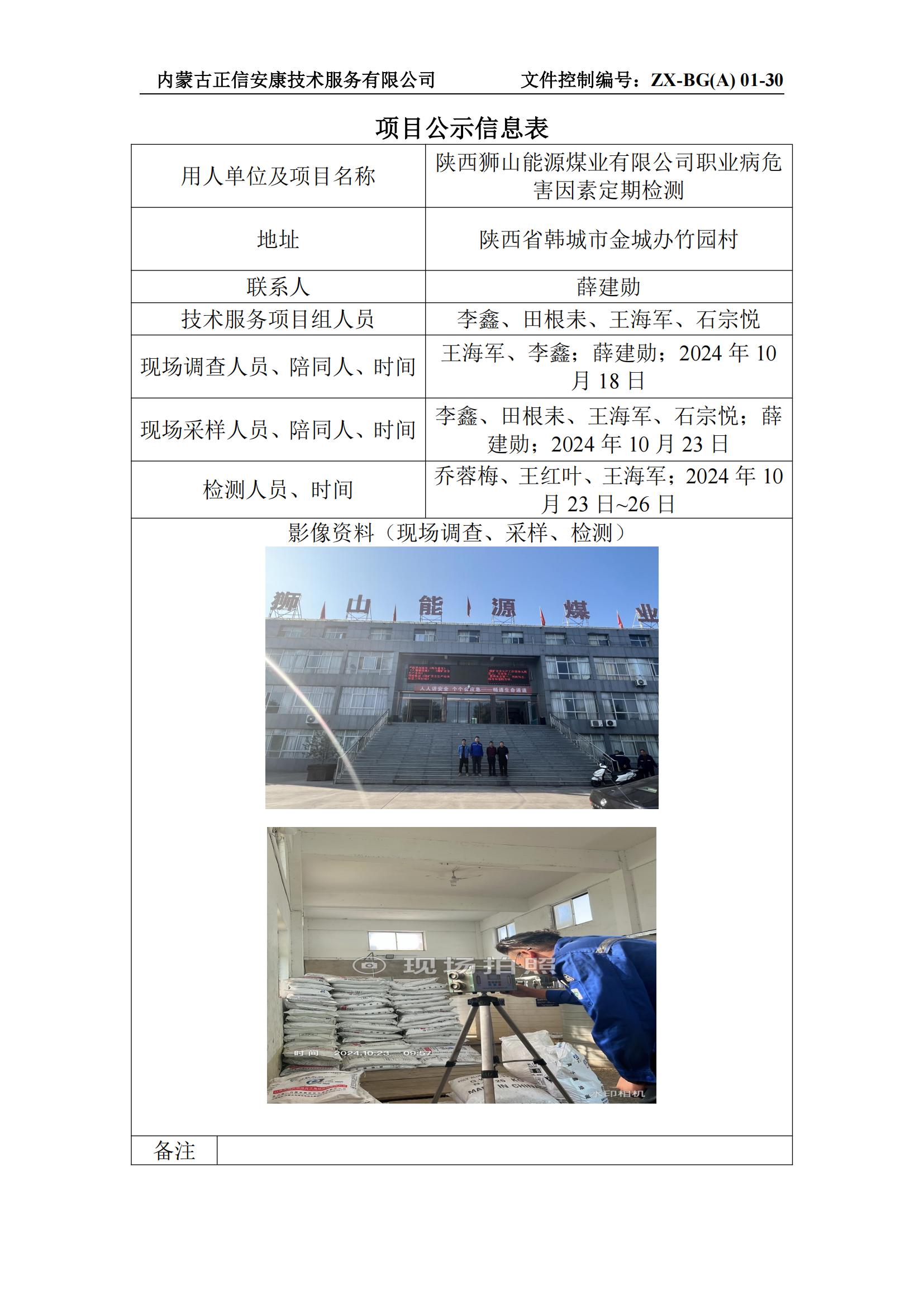 陜西獅山能源煤業(yè)有限公司職業(yè)病危害因素定期檢測