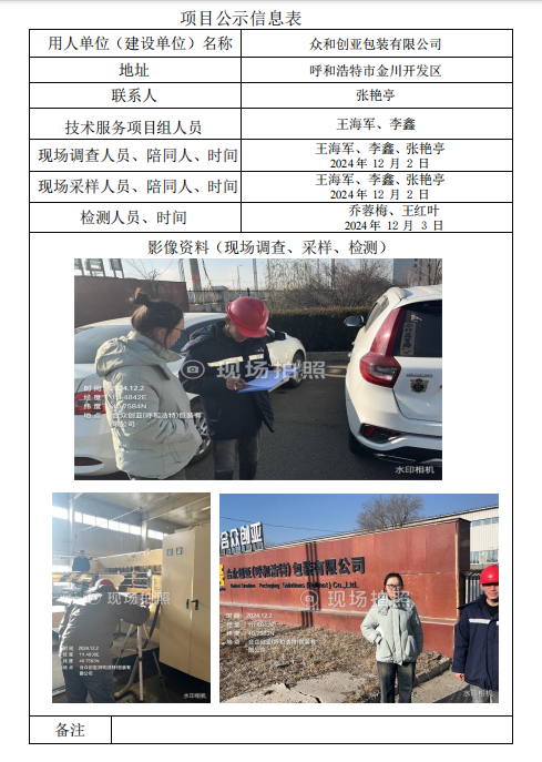 眾和創(chuàng)亞(呼和浩特)包裝有限公司職業(yè)病危害因素定期檢測(cè)