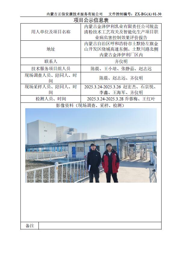 內(nèi)蒙古金澤伊利乳業(yè)有限責(zé)任公司脫鹽清粉技術(shù)工藝攻關(guān)及智能化生產(chǎn)項(xiàng)目職業(yè)病危害控制效果評(píng)價(jià)報(bào)告