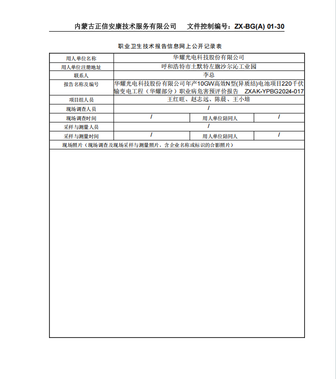 華耀光電科技股份有限公司年產(chǎn)10GW高效N型(異質(zhì)結(jié))電池項目220千伏 輸變電工程(華耀部分)職業(yè)病危害預評價報告