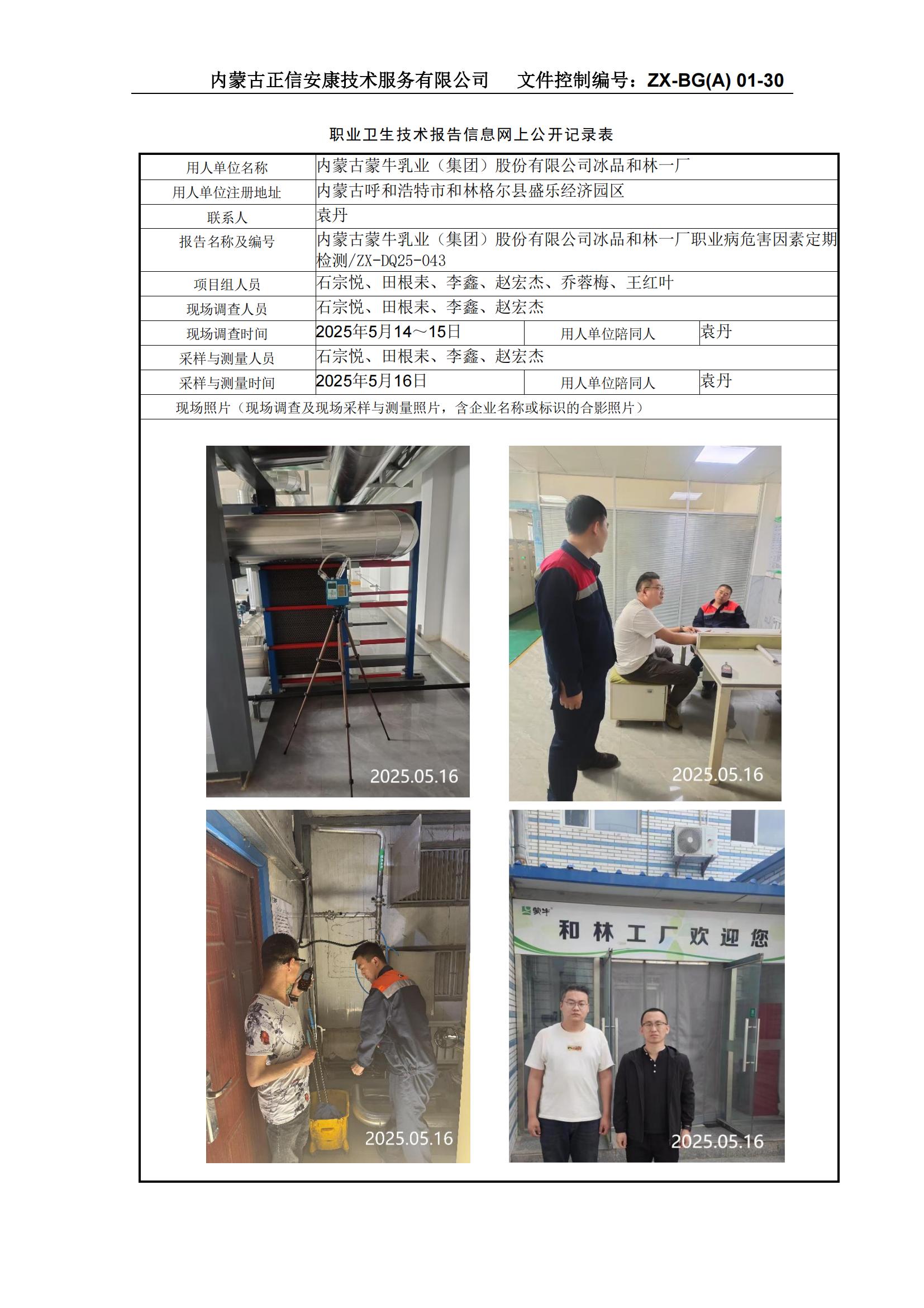 內(nèi)蒙古蒙牛乳業(yè)(集團(tuán))股份有限公司冰品和林一廠職業(yè)病危害因素定期檢測